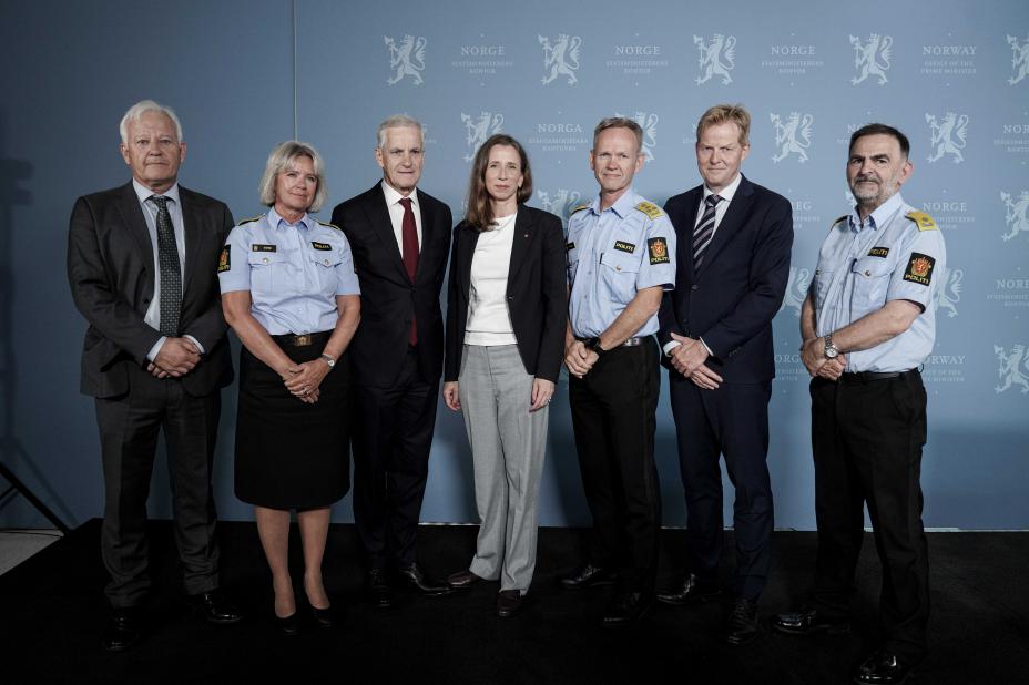 Statsminister Jonas Gahr Støre og justis- og beredskapsminister Astri Aas-Hansen (Ap) møtte en rekke polititopper etter granatangrepet i Pilestredet for to uker siden for å diskutere tiltak mot den økende oppdragsvolden. Foto: Ole Berg-Rusten / NTB
