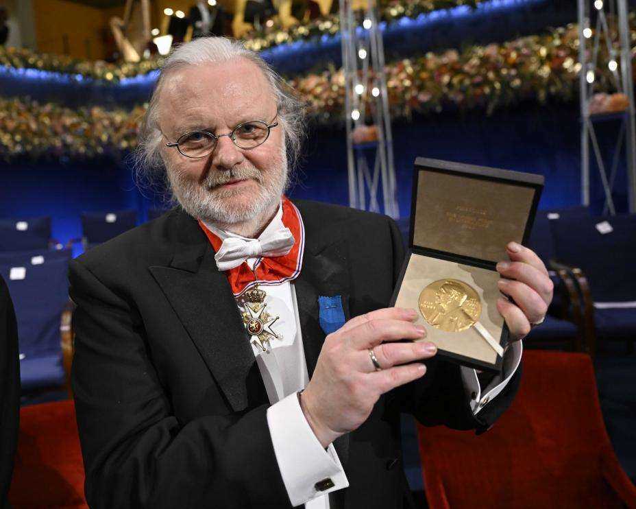 Nobelprisvinneren i litteratur Jon Fosse bar kommandør av St. Olavs Orden da han mottok nobelprisen i litteratur i 2024. Foto: Jonas Ekströmer/ TT / NTB