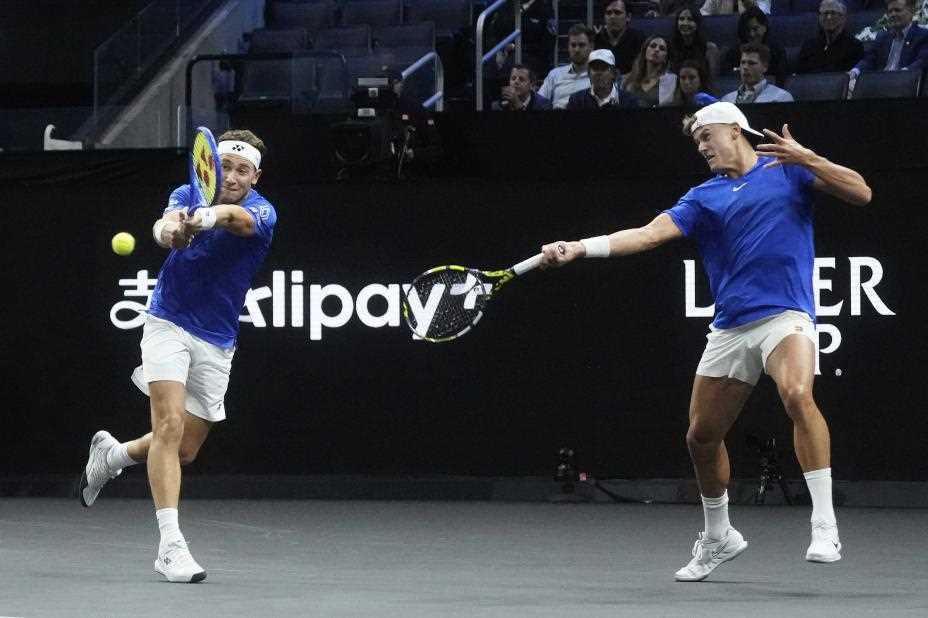 Casper Ruud og Holger Rune i aksjon i Laver Cup. Foto: Jeff Chiu / AP / NTB