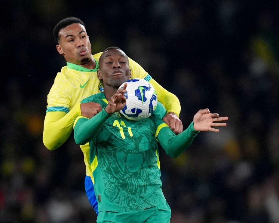 Arsenals målfarlige midtstopper Gabriel måtte gå av banen med skade i Brasils 2-0-seier over Senegal i en treningskamp på Arsenals hjemmebane lørdag.
