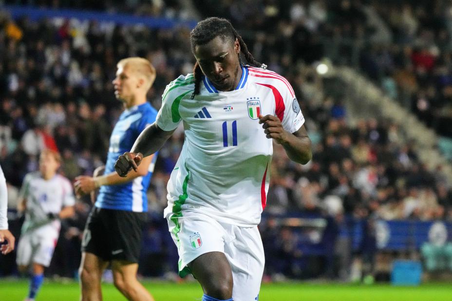 Moise Kean scoret kampens første mål mot Estland lørdag, men skadet seg senere i oppgjøret. Foto: Sergei Grits / AP / NTB