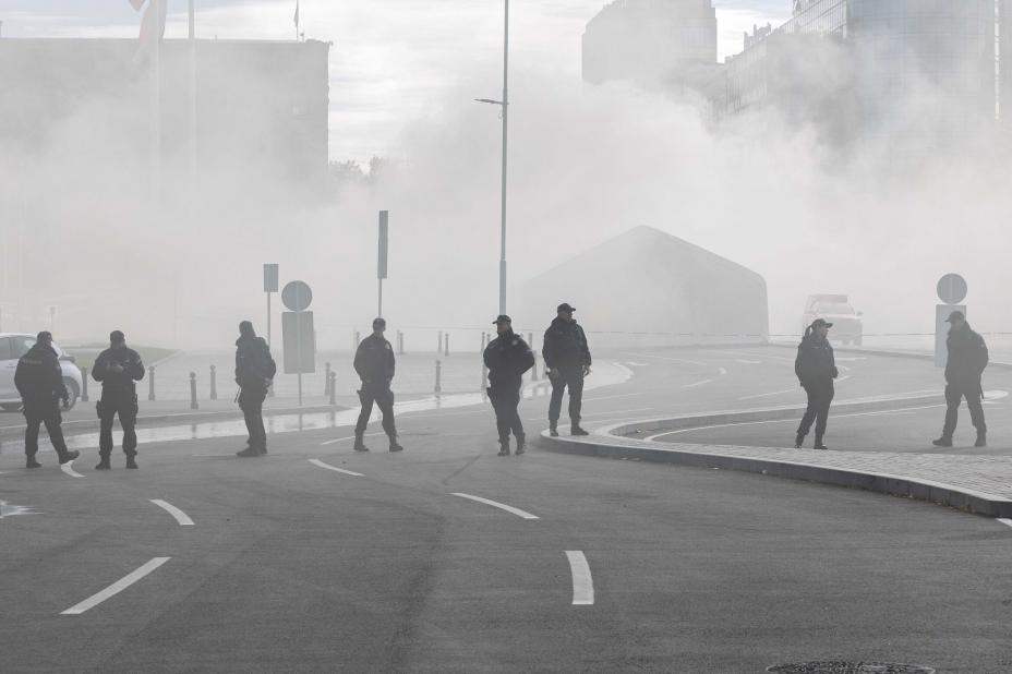 Krig og konflikter: Sikkerhetsstyrker skal ha løpt mot et telt som sto oppslått i nærheten av parlamentet, opplyser kilder til Reuters. Teltet skal tilhøre tilhengere av landets president Aleksandar Vucic.