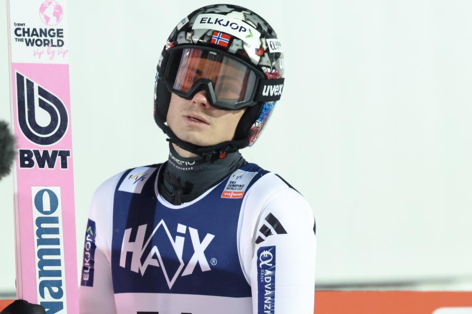 Marius Lindvik og de andre norske hopperne får ikke muligheten til å konkurrere i Ruka søndag. Foto: Geir Olsen / NTB
