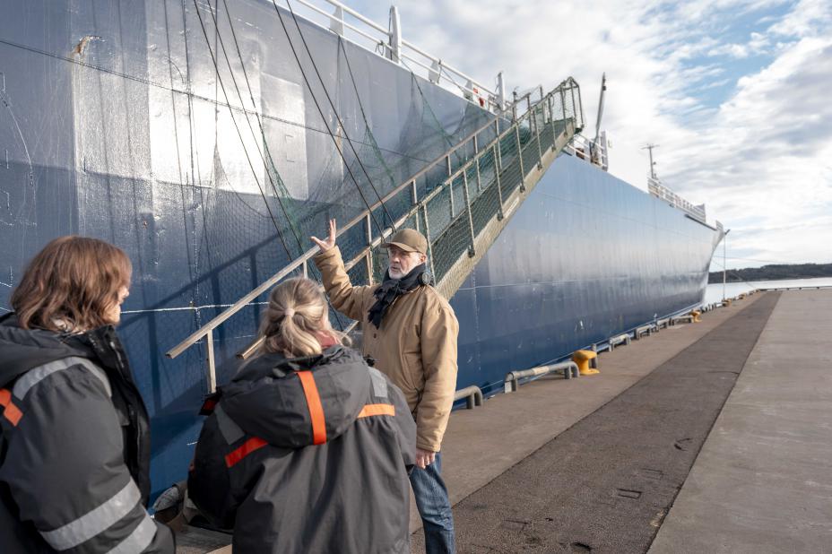 For anledningen er et drøyt 120 meter langt konteinerskip blitt leid inn og ligger ved kaia i Grötö havn i svenske Lysekil.
