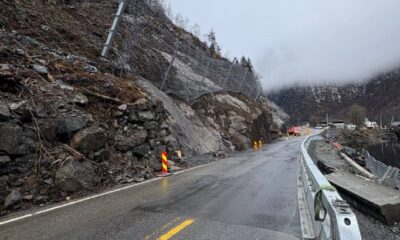 Steinsprang på Riksveg 13 i Indre Ryfylke