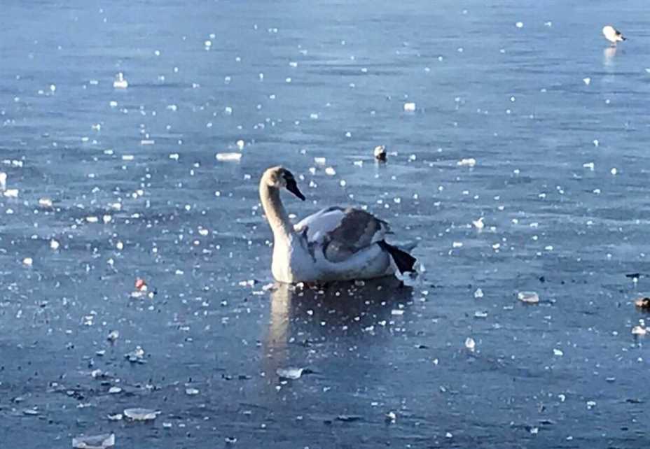 Brannvesenet opplever hvert år meldinger fra bekymrede innbyggere som tror svaner sitter fastfrosset og fryser på islagte vann. Slik er det som oftest ikke.