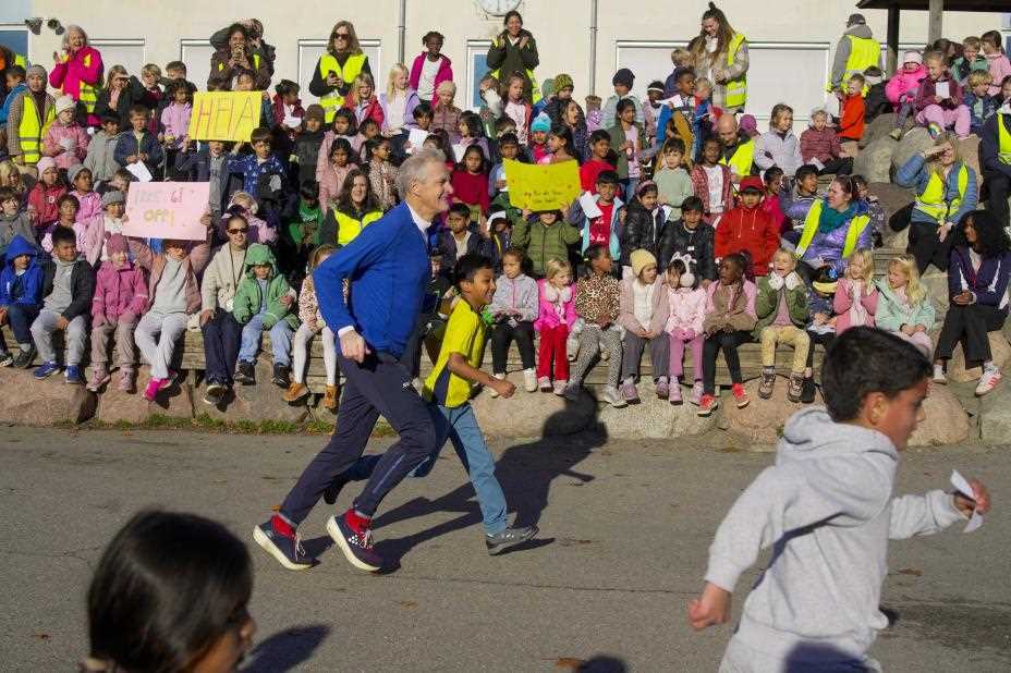 Statsminister Jonas Gahr Støre stilte i treningstøy og løp sammen med elevene på Manglerud i Oslo. Rundt 1000 norske skoler bidrar til TV-aksjonen. Utdanning: Også Birgit...