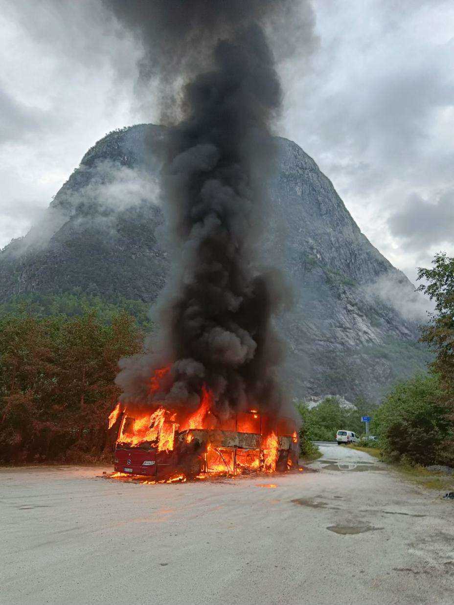 Brannvesenet har slukket brannen i en turistbuss i Nærøydalen i Gudvangen i Aurland. Bussen er helt utbrent. Ulykker og naturkatastrofer: Vaktleder Stian Kvam ved Vest 110-sentral...