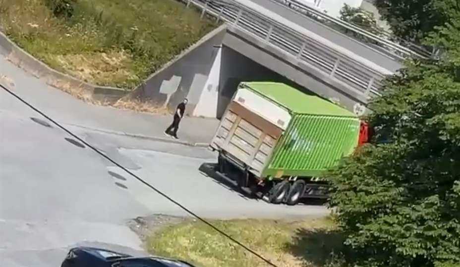 En av Bring sine lastebiler kjørte seg fast i undergangen på Diktervegen ved Åkra bil i ettermiddag. Trafikk: Det var ved 12.30-tiden onsdag ettermiddag at Radio...