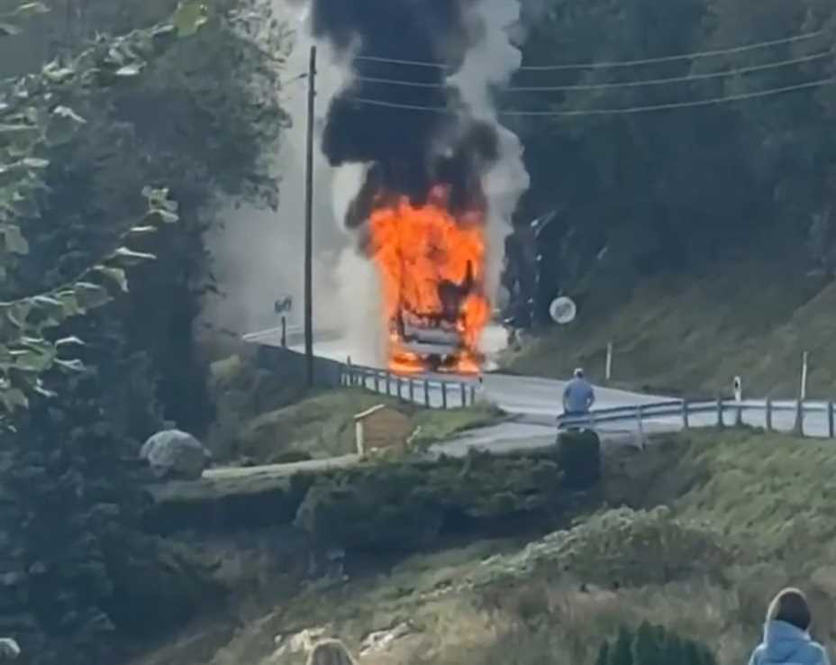 En turbuss fra Skudebuss sto søndag ettermiddag i full fyr på E134 ved Knapphus. Nå roses sjåføren for rask og profesjonell innsats. Bussbrannen: Alle de 47...