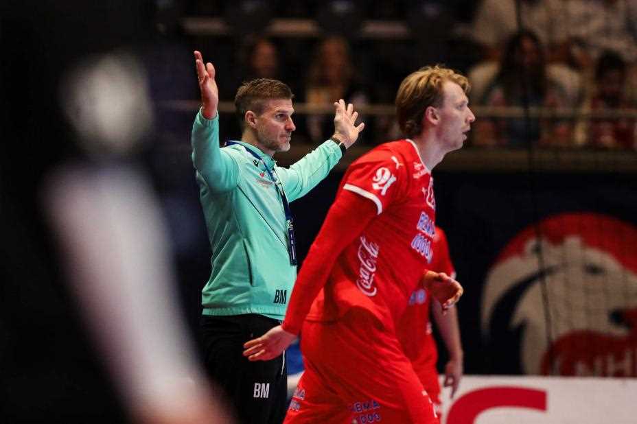 Sander Sagosen var svært fornøyd etter Norges sliteseier over Tsjekkia i EM. Underveis havnet han i duell med en stor motstander. Sport: Tsjekkias back Jan Uzek...