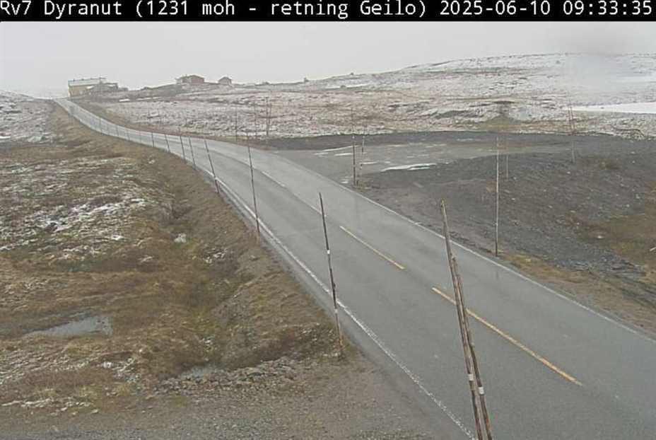 Riksvei 7 over Hardangervidda er delvis stengt etter en ulykke ved Dyranut. Fem bilder står fast på stedet. Ulykker og naturkatastrofer: – Meldt om trafikkulykke RV...