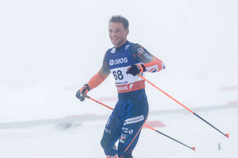 Gabriel Gledhill (23) fant ikke toppfarten på skiene under femmila i Holmenkollen lørdag. Da tok han seg like gjerne en fest langs løypa. Gabriel Gledhill (23)...