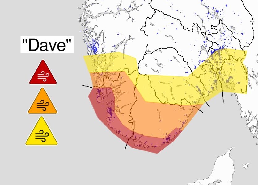 Også Østfold får oransje farevarsel når uværet Dave treffer søndag. Også Østfold får oransje farevarsel når uværet Dave treffer søndag.