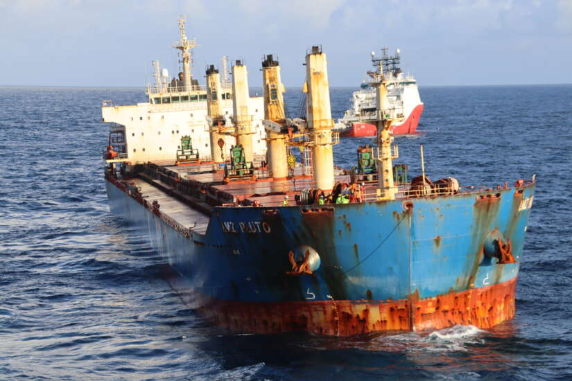 Det havarerte bulkskipet LMZ Pluto er slept til kai etter en vellykket redningsaksjon. Det havarerte bulkskipet LMZ Pluto er slept til kai etter en vellykket redningsaksjon.