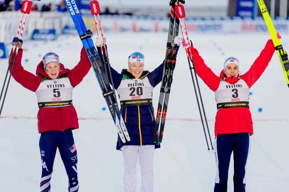 Jonna Sundling var først i mål etter 20 harde kilometer på fellesstarten i verdenscupåpningen i finske Ruka søndag. Heidi Weng tok en ny pallplass. Sport: –...