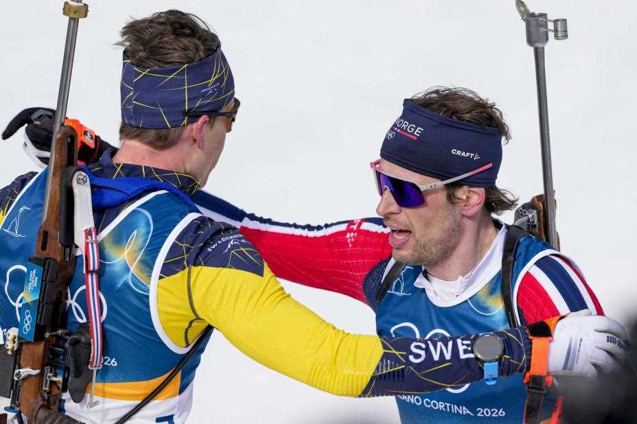 Svenske Martin Ponsiluoma vant gull på jaktstarten i OL etter en sprekk fra Émilien Jacquelin. Sturla Holm Lægreid sikret sin tredje medalje i lekene med sølv....