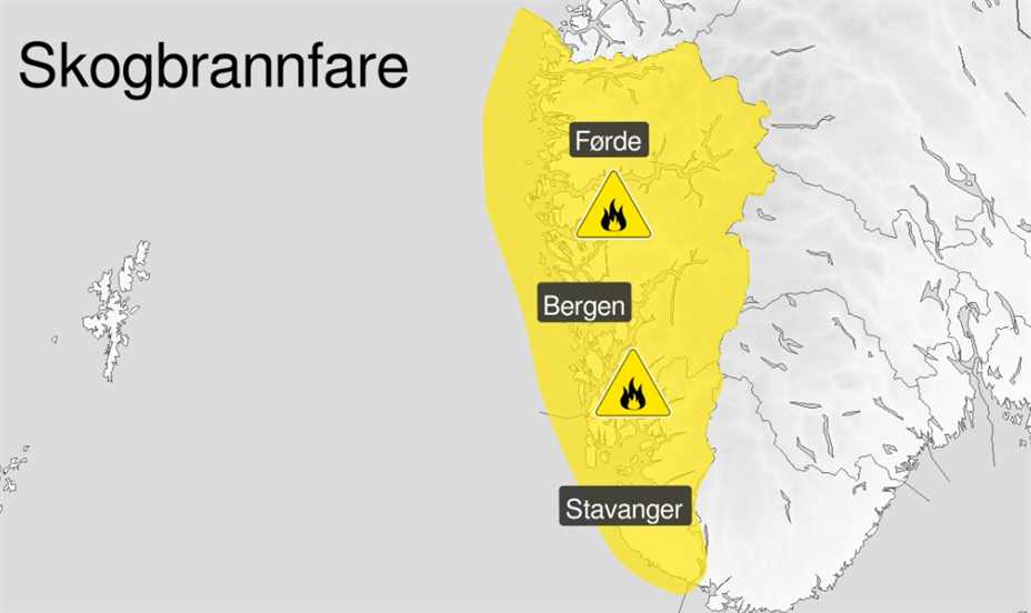 Meteorologisk Institutt har sent ut varsel om stor skogbrannfare for deler av Vestland og Rogaland. Skogbrannfare: Vegetasjon kan lett antennes og store områder kan bli berørt,...