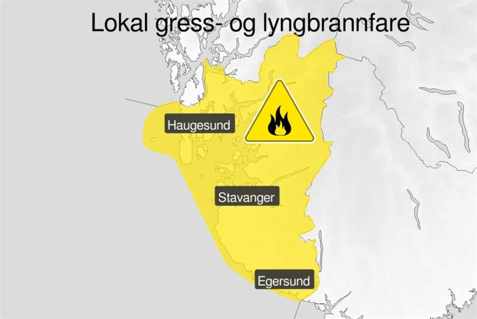 Meteorologisk institutt har sendt ut gult farevarsel for skogbrannfare på Haugalandet søndag. Skogbrannfare: Det er meldt lokal gress- og lyngbrannfare i snøfrie områder, ifølge Meteorologisk institutt....