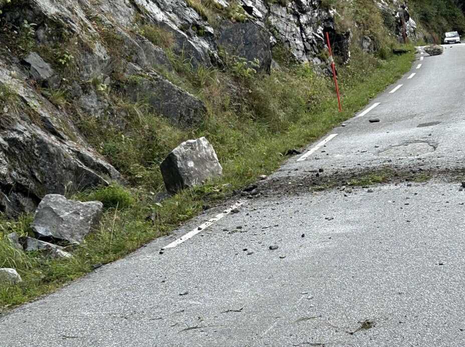 Fylkesvei 5616 Fimreitevegen i Sogndal ble åpnet igjen lørdag ettermiddag etter å ha vært stengt i flere timer. Flere store steiner raste ned på veien. Ulykker...