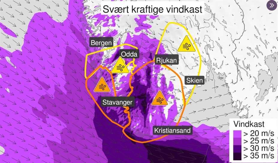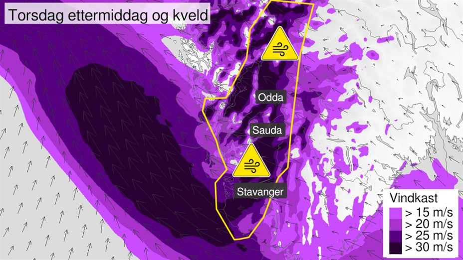 Det er sent ut ekstremvarsel om kraftige vindkast torsdag ettermiddag og kveld. Uvær: Varselet fra Meteorologisk Institutt for deler av Rogaland og Hordaland viser at vi...