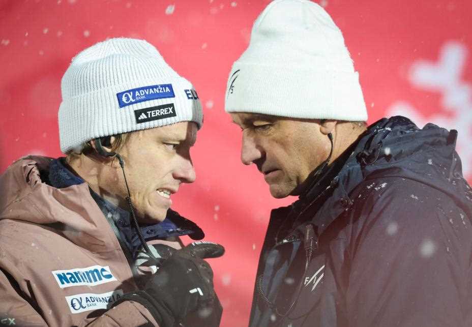 Den norske hoppledelsen møtte juryen etter søndagens verdenscuprenn. I etterkant ble Isak Andreas Langmos gule kort fjernet. Sport: Norsk presse samlet seg i flokk utenfor brakkene...