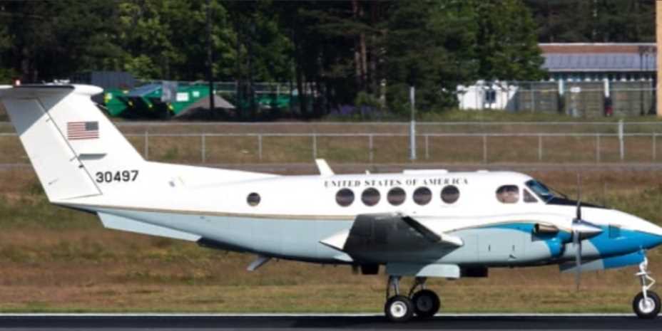 Et amerikansk treningsfly skapte oppmerksomhet da det sirklet flere runder over flyplassen på Karmøy fredag formiddag. Flyplass: Et amerikansk militærfly kom fra Oslo, fløy flere runder...