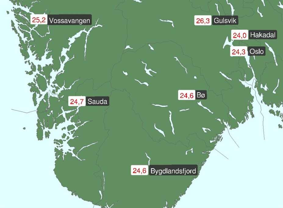 Sauda fortsetter å levere sommervarme i mai! Også i dag var bygda blant de varmeste stedene i landet, med 24,7 grader på målestokken. Været: Sør-Norge har...