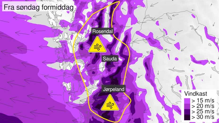 Det er sendt ut varsel om sterk vind i deler av Rogaland og Sunnhordland nyttårsaften. Ekstremvarsel: Det er sendt ut varsel fra Meteorologisk Institutt for deler...