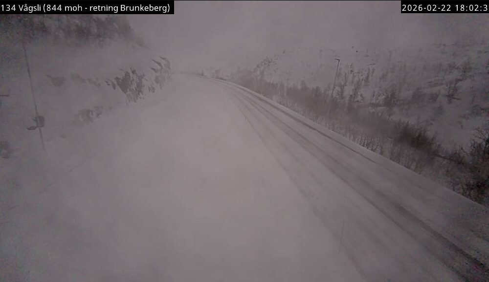 Snø og vind gir krevende kjøreforhold på E134 søndag ettermiddag. Bilister bes senke farten. Trafikk: Vegtrafikksentralen sør advarer trafikanter som skal over Haukelifjell. Fjellovergangen mellom Vestland...