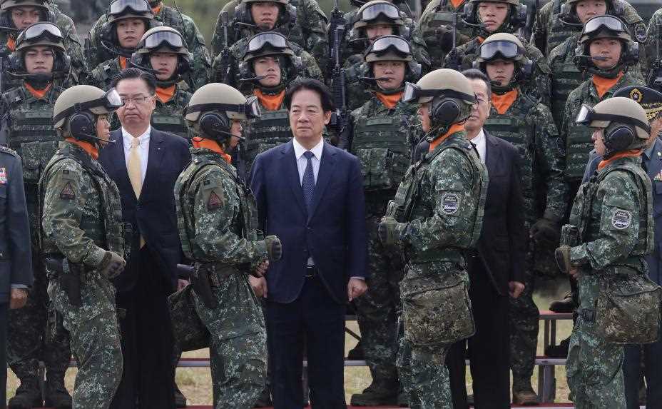 Taiwanske soldater øver mandag med skarpt artilleri på å motstå landgang sør på øya.
