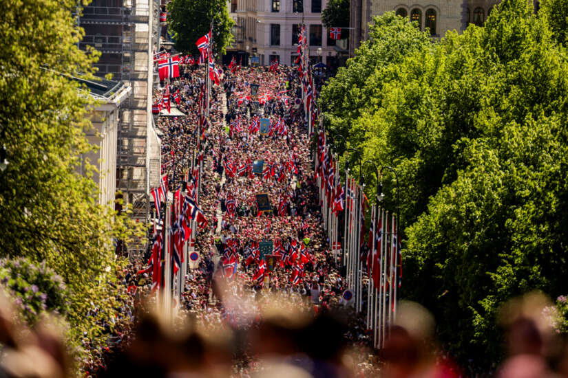 Det er stas å gå først i barnetoget opp Karl Johans gate på 17. mai. Foto: Amanda Pedersen Giske / NTB