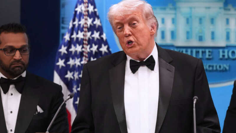 President Donald Trump holdt pressekonferanse etter skyteepisoden. Ved siden av ham står FBI-sjef Kash Patel. Foto: Alex Brandon / AP / NTB
