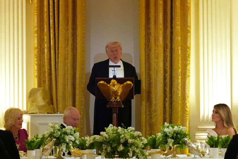 Under kong Charles’ statsbesøk til USA – det første av en regjerende britisk monark på nesten 20 år – hevdet Donald Trump at kongen støtter ham i synet på Iran. «Vi kommer aldri til å la den motstanderen få et atomvåpen», sa Trump. Diskusjoner om kjernekraft er ett av punktene landene ikke har klart å bli enige om.