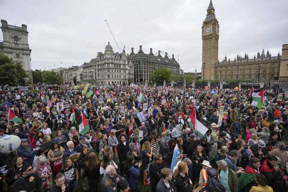 Krig og konflikter: Politiet i London estimerer at rundt 5000 mennesker har møtt opp til demonstrasjonene i sentrum av byen.