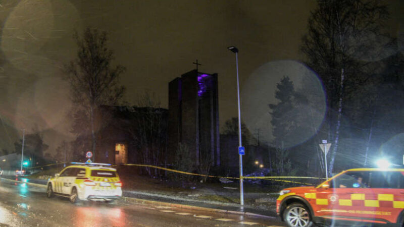 Politi og brannvesen har rykket ut til meldinger om at taket på Lambertseter kirke er i ferd med å blåse bort. Deler av området rundt kirken er sperret av, og veien som går ved kirken, er stengt på ubestemt tid.