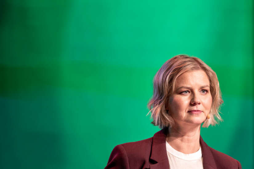 Venstre-leder Guri Melby kaller det «helt uaktuelt» å senke forsvarsambisjonene i et stadig mer tilspisset sikkerhetspolitisk bilde. Da vil Venstre trekke seg fra forliket, sier hun. Foto: Thomas Fure / NTB