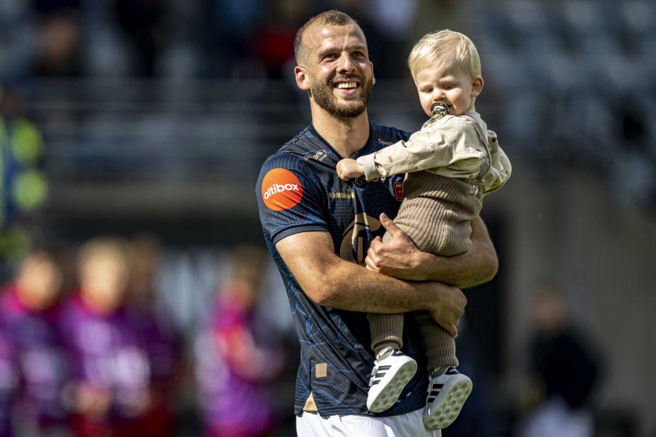 Vikings Zlatko Tripic sammen med sønnen Luka etter en kamp mot Rosenborg i fjor. Nå venter han og kona på barn nummer to. Foto: Carina Johansen / NTB