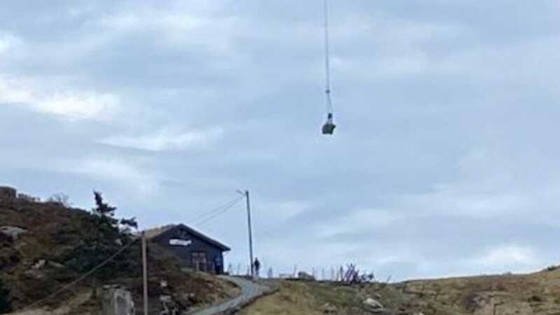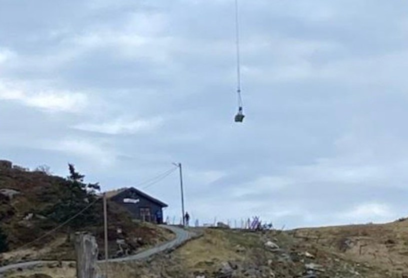 Med sterk vind måtte helikopterpiloten gi opp leveransen av trollet ved Kringsjå. FOTO: Privat