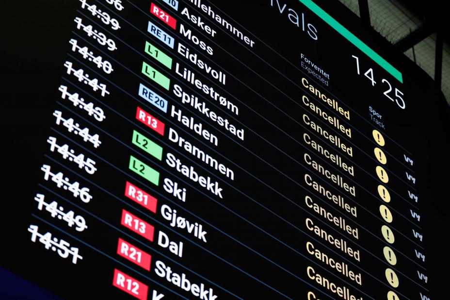 Alle tog var innstilt i 13 timer 1. juledag 2024. Foto: Amanda Pedersen Giske / NTB